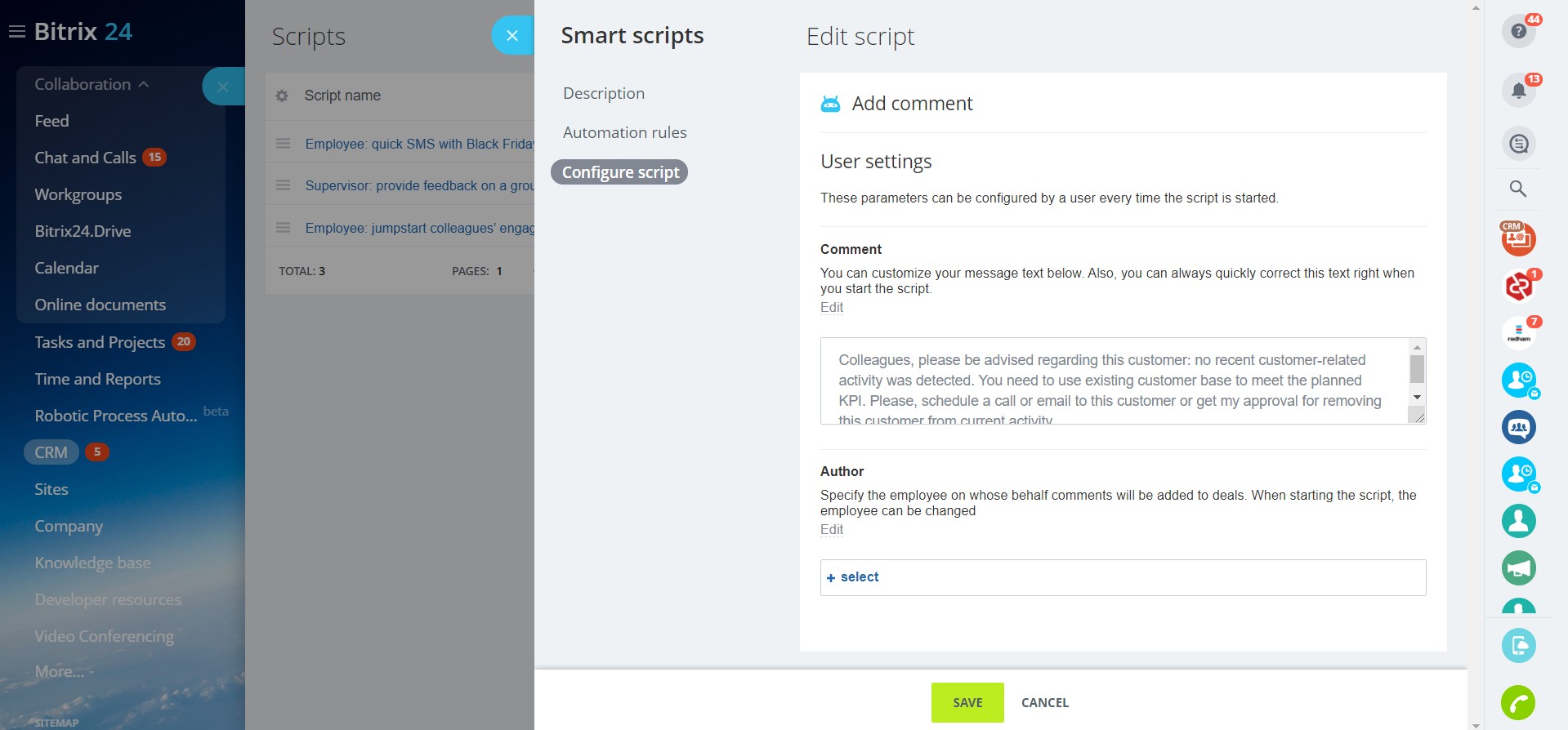 Take advantage of ready-to-use smart scripts to perform standard CRM actions!