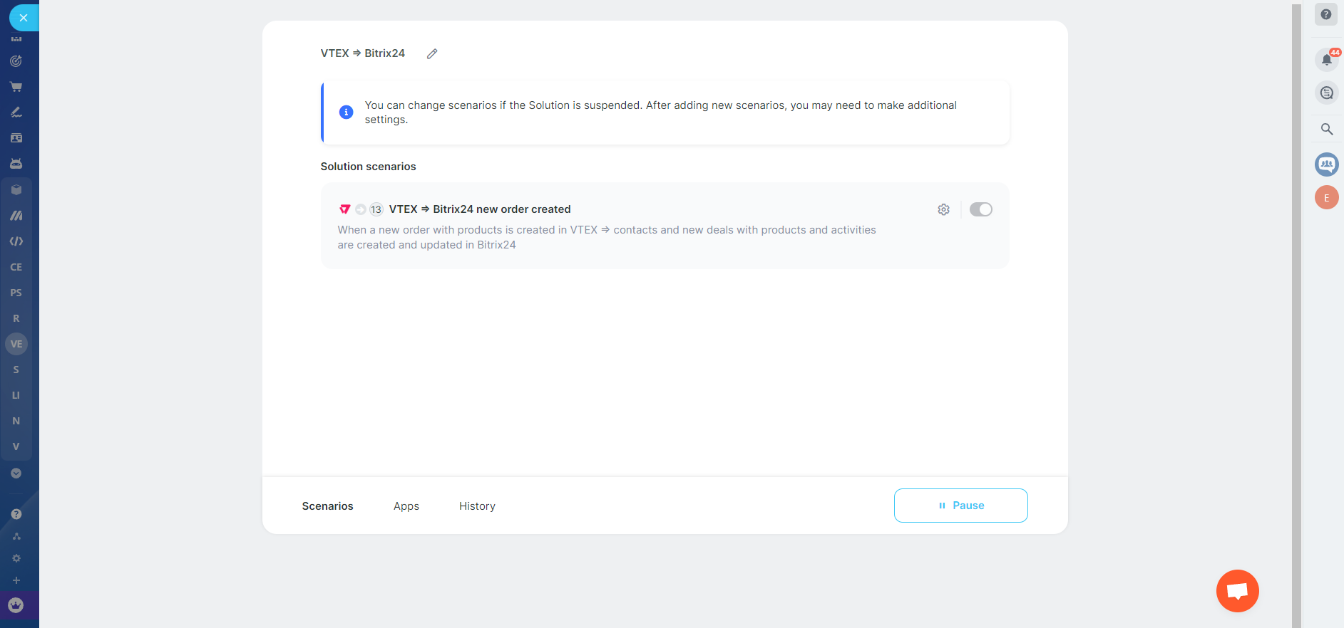 - Automatic creation of a dedicated activity in Bitrix24 for each new VTEX order