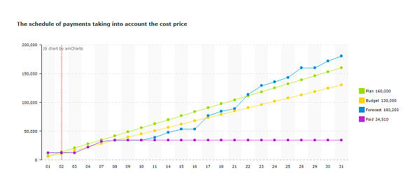 That allows you to understand at a glance to what extent the optimal sales plan for each day is being delivered. You can see on the chart which days were better or worse comparing to the optimal plan and understand whether the sales plan will be met, if the current payment dynamics continues.