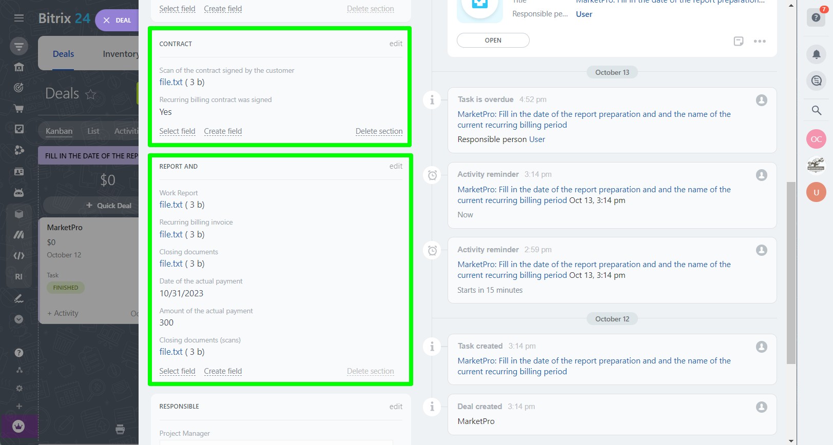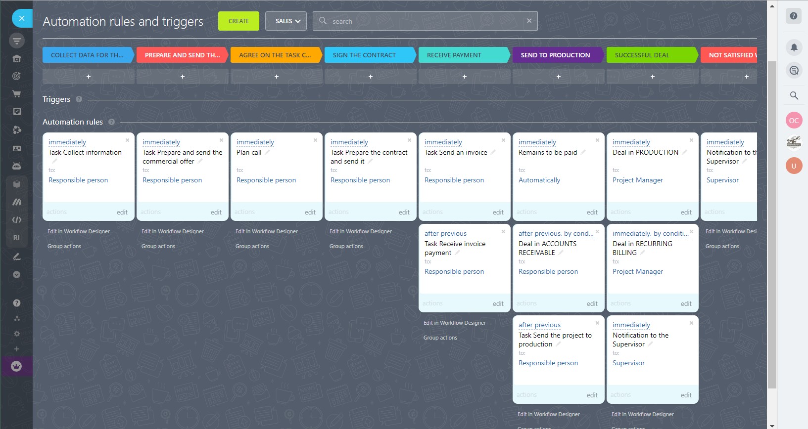 3. Tasks and encouraging notifications for the manager, which are created automatically at each stage of the work