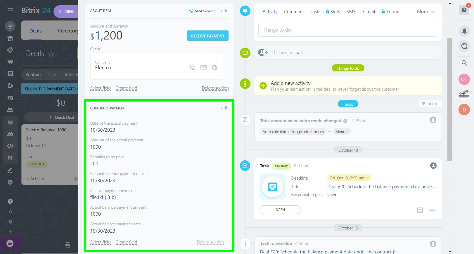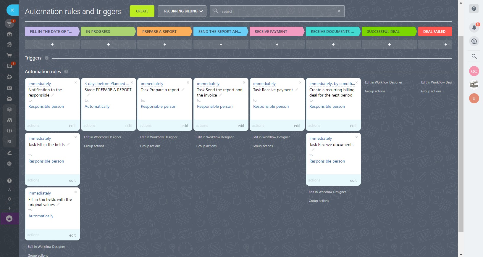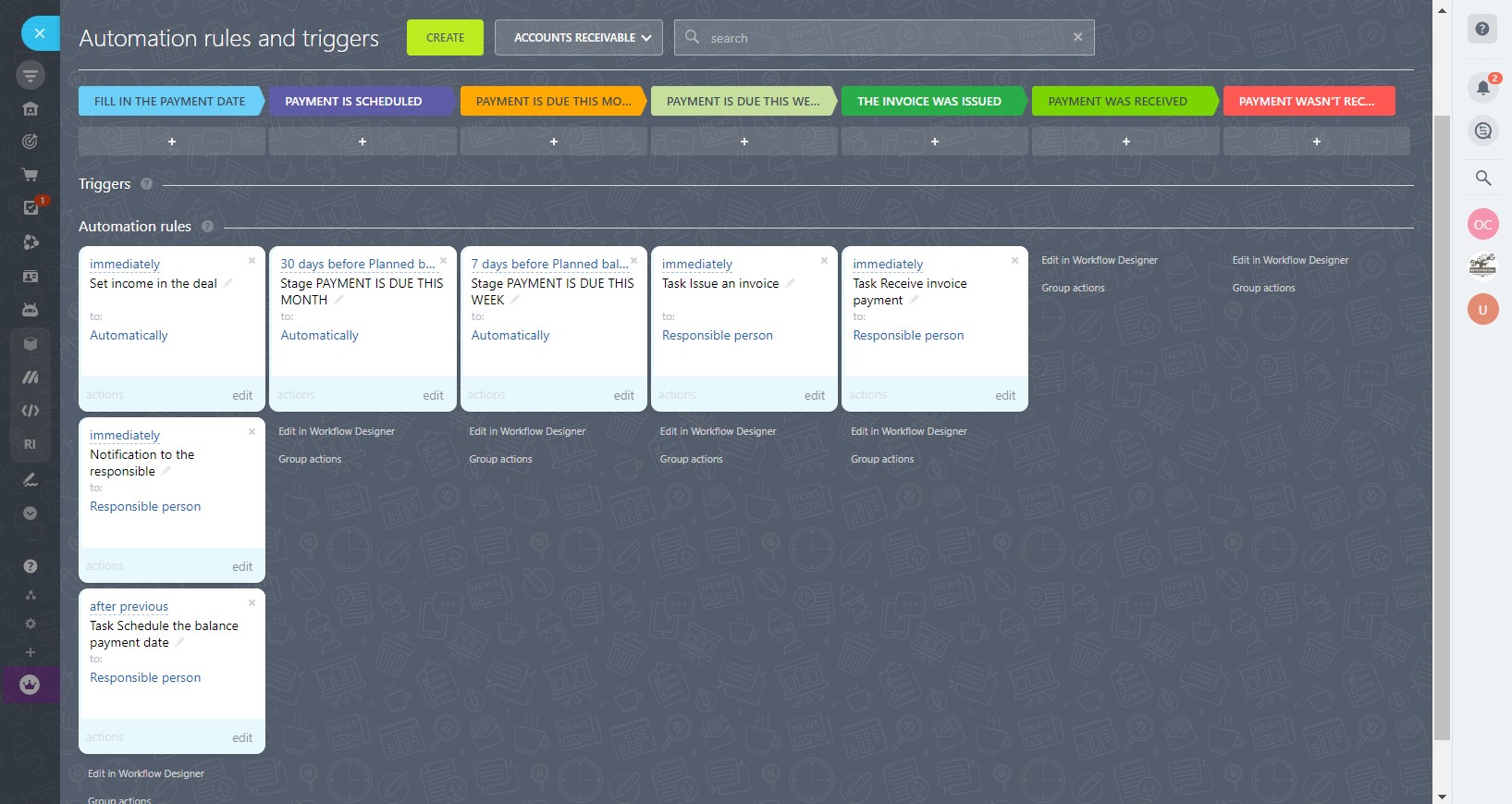 - with automatic change of stages depending on the date of the scheduled payment