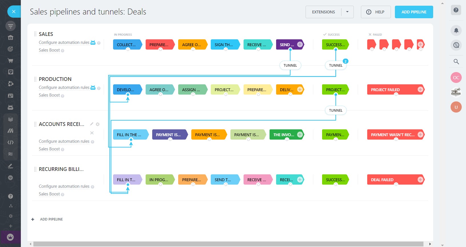 Automated funnel for working with accounts receivable