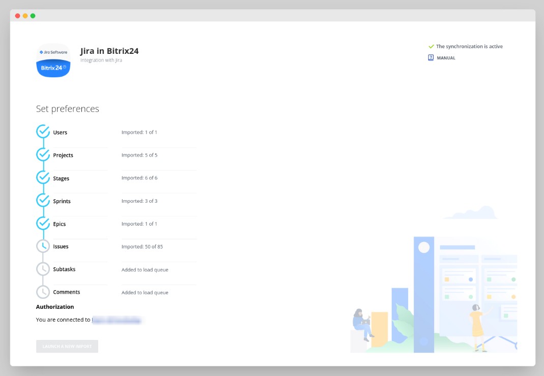 To transfer project data from Jira, you need to install the application from the market and import the data into your Bitrix24.