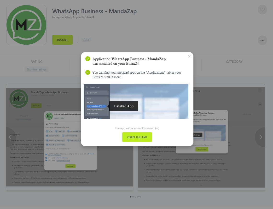 Connect your WhatsApp to Bitrix24 with WhatsApp Business API MandaZap and boost your customer service efficiency.