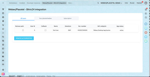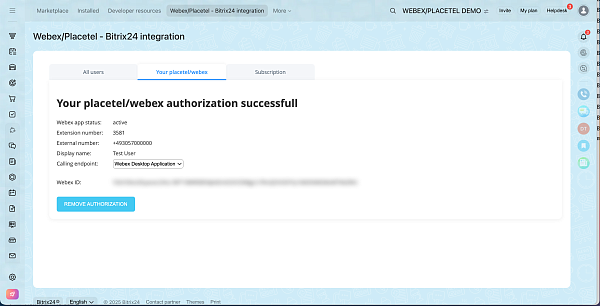 - Store and access call recordings right inside Bitrix24 (when enabled in your Webex or Placetel).