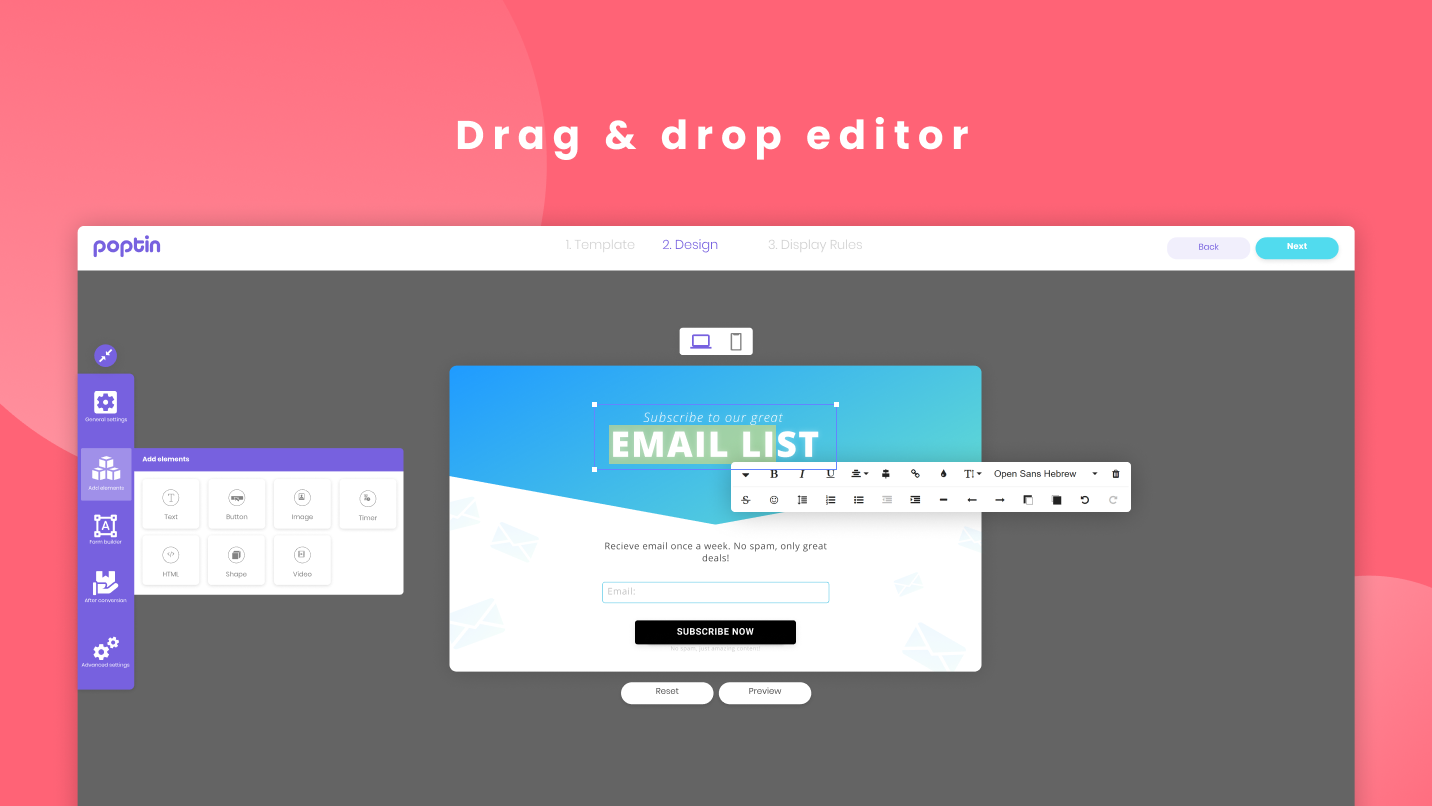 - Increase your on-site engagement by showing the right popups and forms in the right time