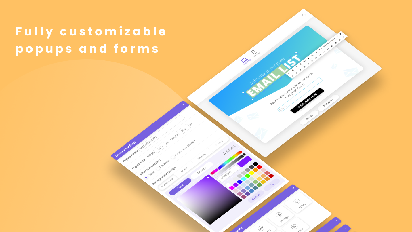 Create beautiful website pop ups and inline contact forms in less than 2 minutes, no coding skills required! Use our smart exit intent popup and smart targeting triggers to increase your conversion rate for visitors into leads, subscribers and sales