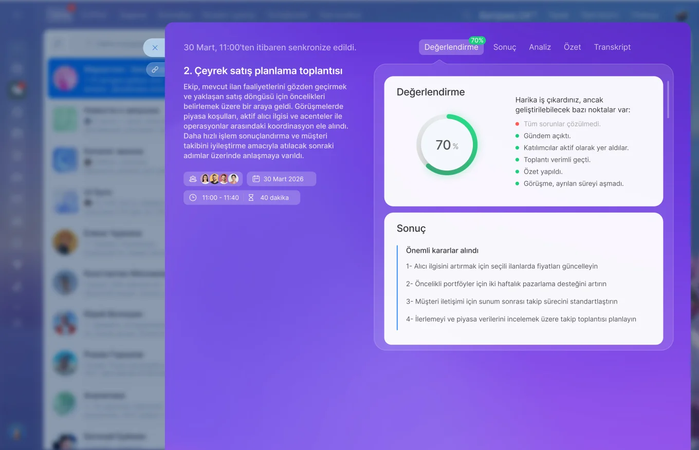 Toplantılardan sonra ise CoPilot Follow-Up maksimum şeffaflık sağlar. Not tutmak veya soru sormakla uğraşmak yerine; değerlendirme, özet, transkripsiyon ve net bir şekilde tanımlanmış sonraki adımları içeren eksiksiz bir analizi otomatik olarak alırsın.