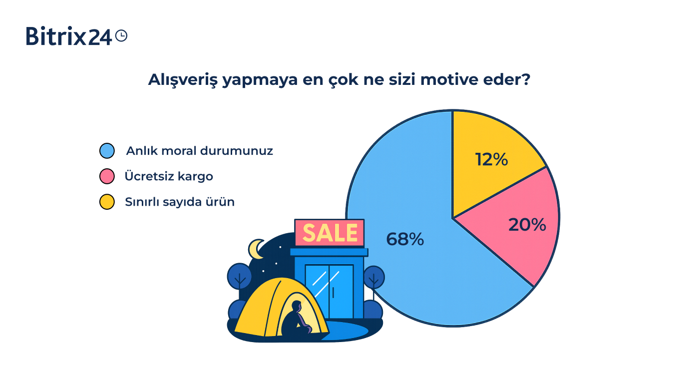 Anketimizin üçüncü temel sorusu, satın alma kararını anlık olarak tetikleyen lojistik ve psikolojik faktörleri inceledi: "Alışveriş yapmaya en çok ne sizi motive eder?" Bu soru, pazarlama ve operasyon ekiplerinin son dakika stratejilerini belirlemesi açısından kritik öneme sahiptir.