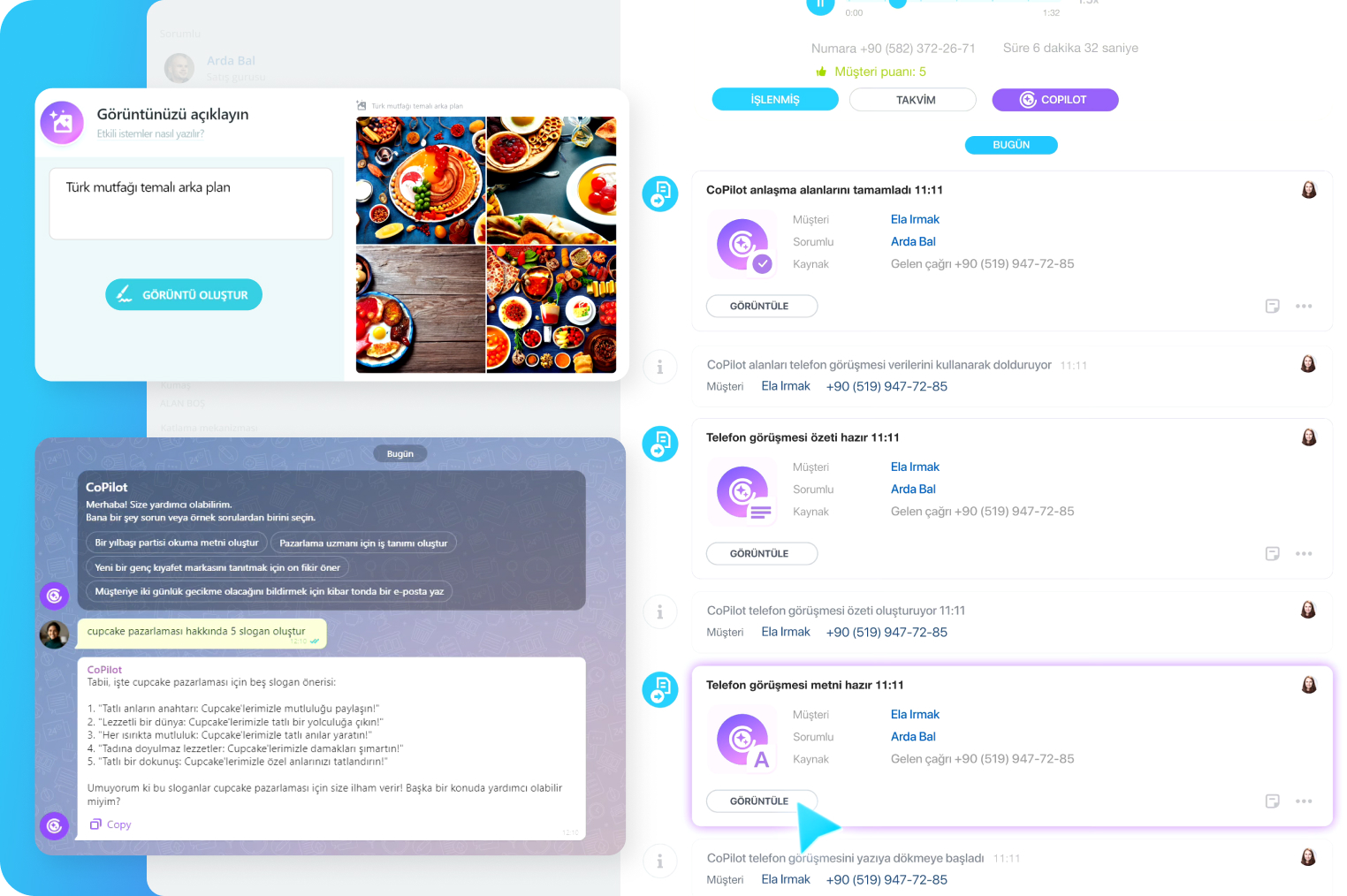 Etkileyici pazarlama metinleri oluşturmak, yeni fikirler üretmek ve CRM'inizdeki telefon görüşmelerini yazıya dökerek ilgili müşteri adayı veya anlaşmadaki alanları otomatik olarak tamamlamak için ücretsiz YZ destekli asistanımız CoPilot'ı kullanın. YZ puanlama aracı, satış tahmininde size yardımcı olur.