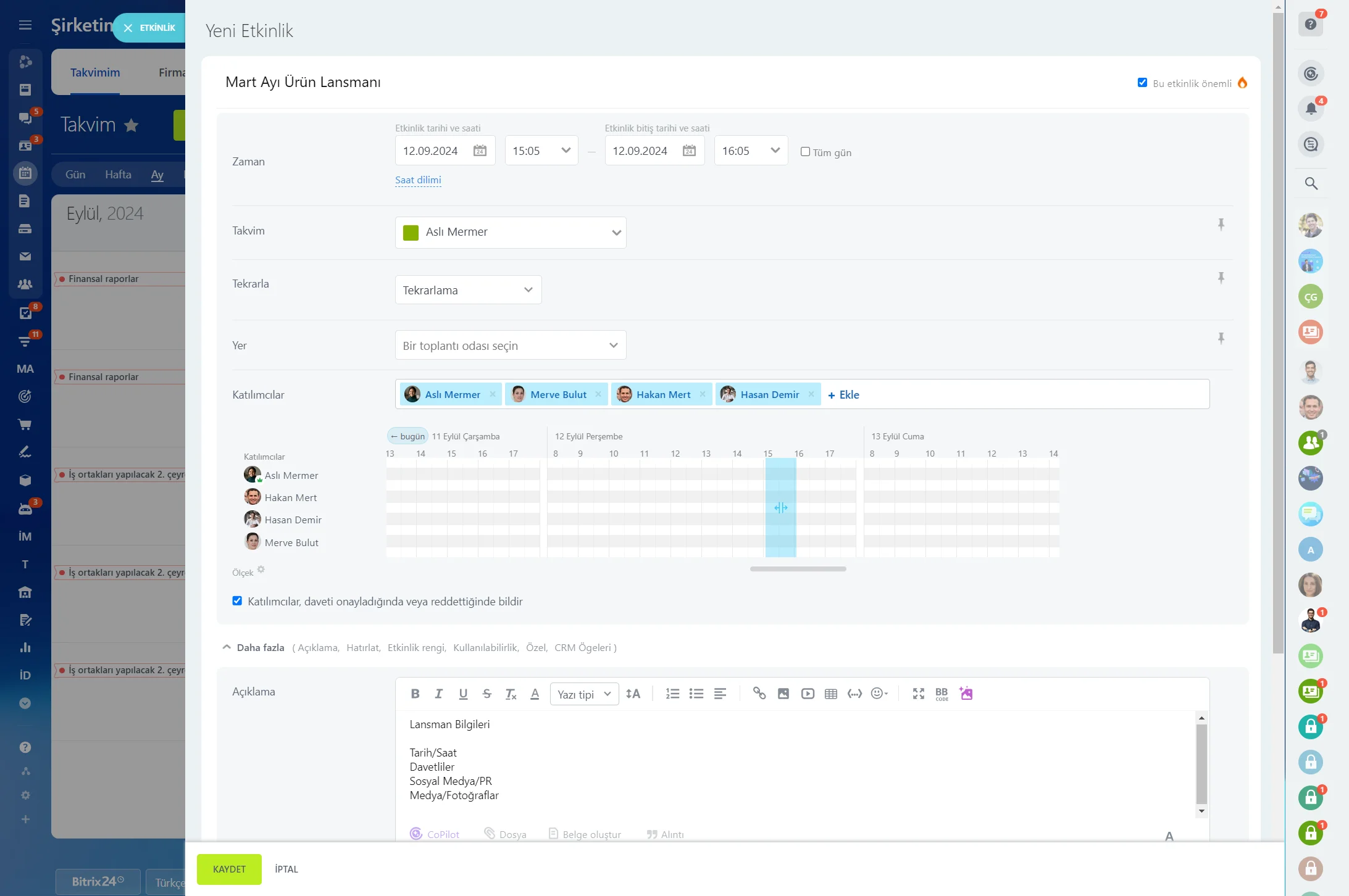 Görev oluşturma ve düzenleme süreci karmaşık olmamalı ve Bitrix24’te bu şekilde de olur. Sadece bir görev oluşturun, bir son tarih belirleyin, görevi kimin tamamlayacağını belirleyin ve görev içine takım üyelerini davet edin.